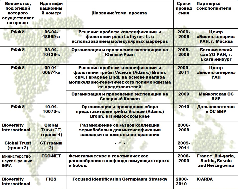 Проекты отдела генетических ресурсов зерновых бобовых культур.